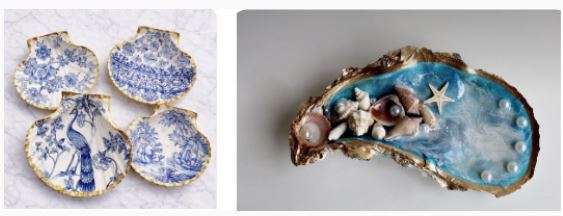 EACH KIT CONTAINS:     1 Oyster Shell, 1 Scallop Shell, Choice of napkin designs, Gold Leaf (imitation), UV Resin, Decoupage